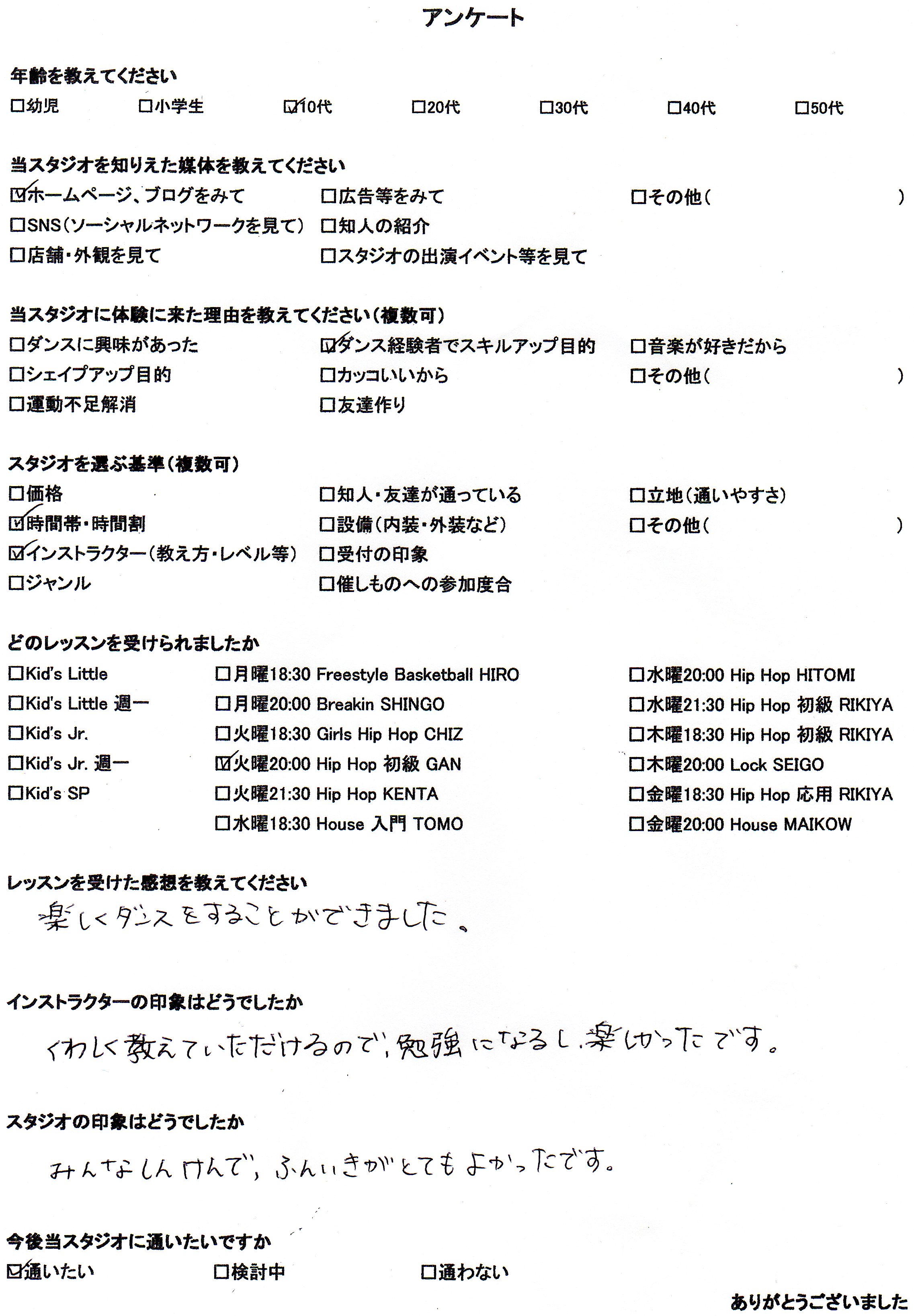 Q.今後当スタジオに通いたいですか