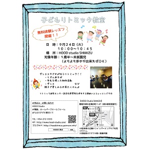 What’s up!?こんにちは。 HOOD Studio SHIMIZUで毎月行っている 子どもリトミック教室! 月2回開催のペースで行ってきましたが、、、 9月開 … 続きを読む リトミック教室、無料体験レッスンを開催!