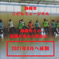 What’s up!?こんにちは。 わたしが講師を務めさせていただいている 「静岡市こどもミュージカル」 今年の8月に公演予定ということで練習をしていましたがR …